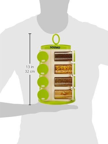 Amazon Brand - Solimo Revolving Spice Rack Set | 16 pieces | Plastic | Tiered Shelf | Tabletop | Green