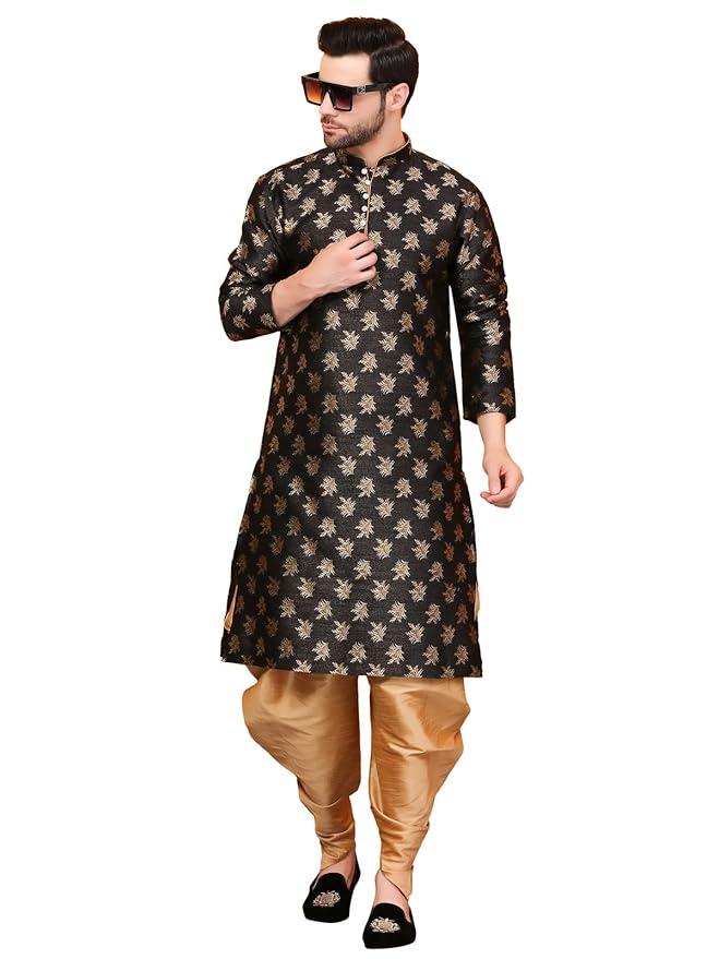 Over Crowd Men Ethnic Gold Leaves 100% pure Jacquard Kurta & Aladdin salwar special for Lohri & New Year, In Panjabi Style