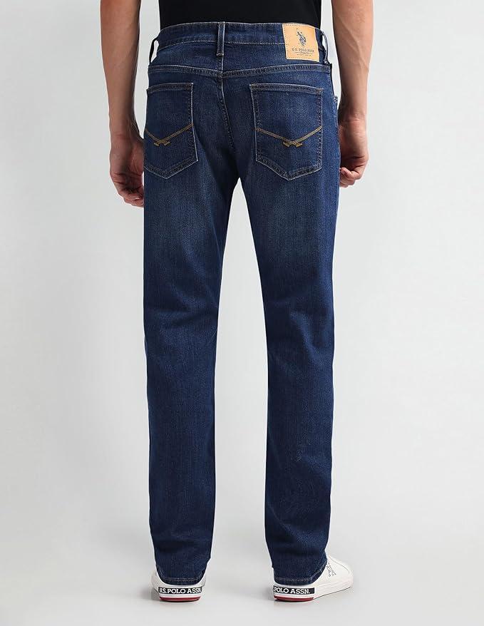 Peter England Men's Tapered Fit Mid Rise Classic Tape Stretchable Twill Jeans