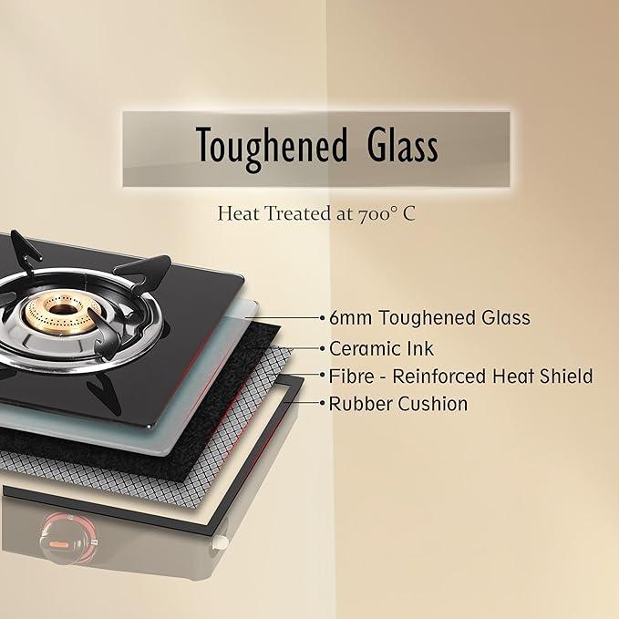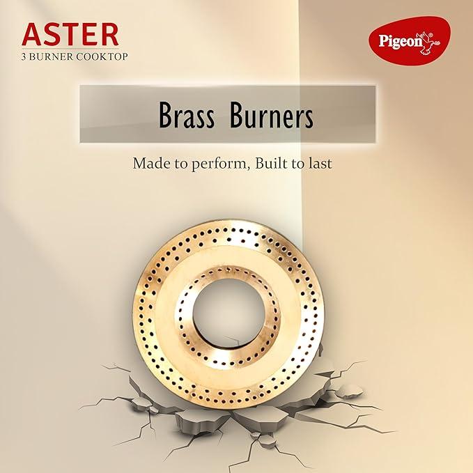 Pigeon by Stovekraft Aster 3 Burner Gas Stove with High Powered Brass Burner Gas Cooktop, Cooktop with Glass Top and Powder Coated Body, Black, Manual Ignition, Standard (14267)