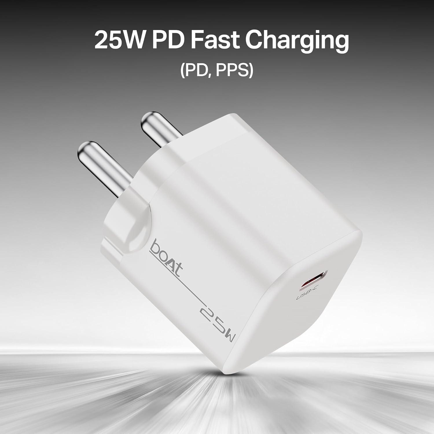 boAt 25W PD Fast Charger with PD & PPS | Auto Detect Charging | Compact Travel-Friendly Design | Rust-Free Pins | Smart IC Safety (Pearl White)