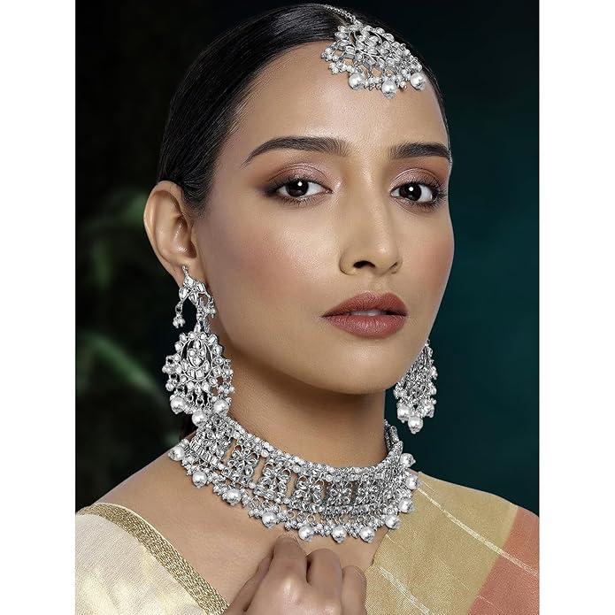 - Package Contains: 1 Necklace, 1 Pair of Earrings, 1 Maangtikka